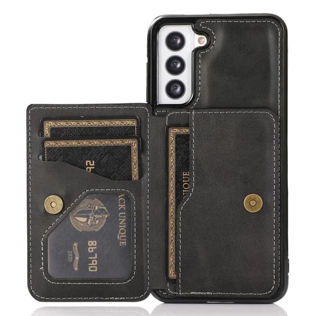 Tyylikkään näköinen PU-nahkakuori ja kuoren takaosaan asennettu pienempi lompakko, jossa on yhteensä 3 lokeroa.