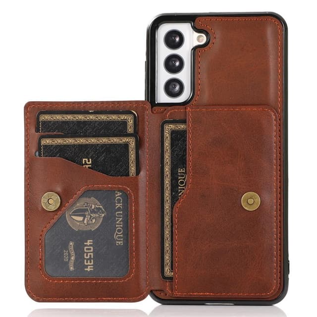Tyylikkään näköinen PU-nahkakuori ja kuoren takaosaan asennettu pienempi lompakko, jossa on yhteensä 3 lokeroa.