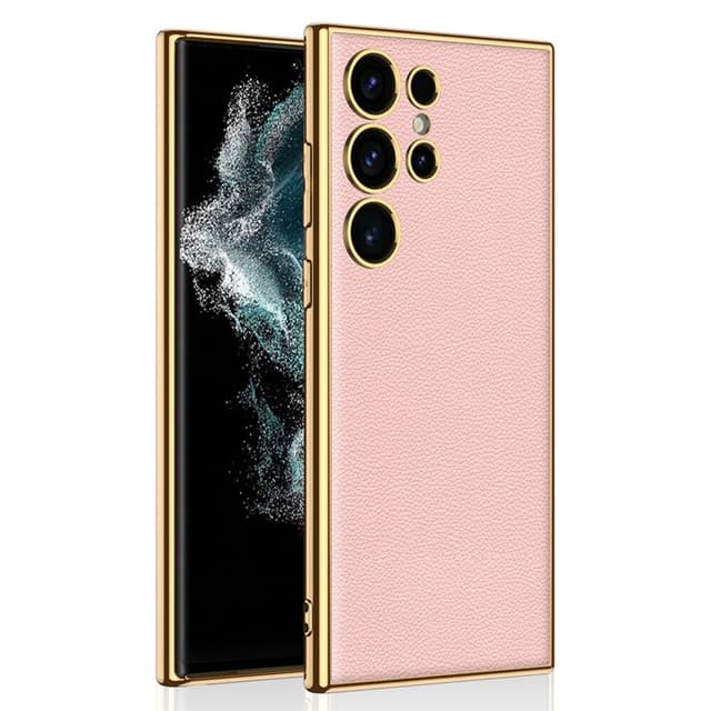 PU-nahasta valmistettu kuori, jossa on kultainen TPU-kehys.