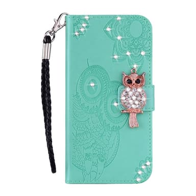 SKALO Samsung S25 FE Owl Bling Lompakkokotelo - Turkoosi