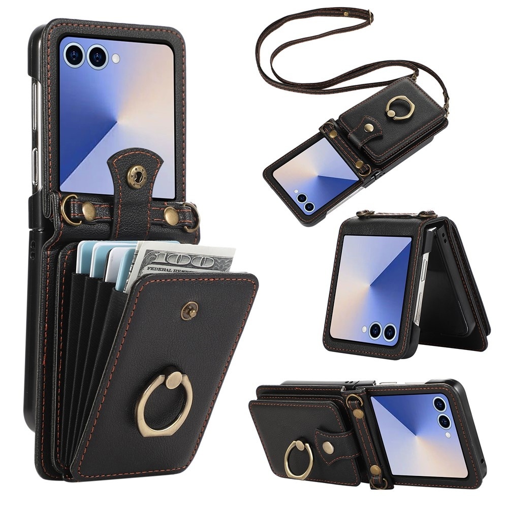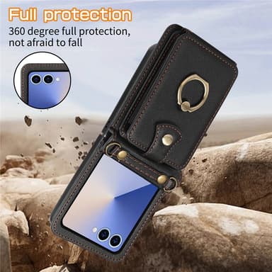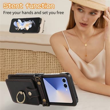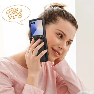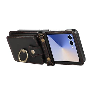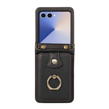 Tämä tyylikäs korttipidike yhdistää kestävän TPU-materiaalin ja PU-nahkapinnan, joka hylkii naarmuja ja sormenjälkiä. RFID-suojaus estää luvattoman pääsyn korttitietoihisi. Takana on haitarimallinen korttitasku magneettinapilla, joka pitää kortit ja käteisen turvassa. Sisäänrakennettu sormuspidike toimii sekä jalustana että tukevana otteena. Mukana tuleva pitkä hihna helpottaa kantamista ja mahdollistaa handsfree-käytön liikkeellä ollessa.