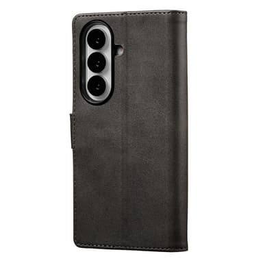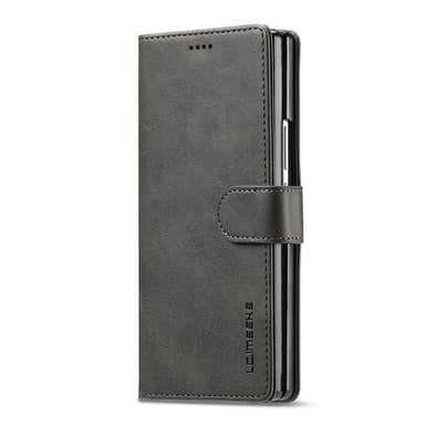 Tämä tyylikäs kotelo on valmistettu PU-nahasta, jossa on vasikannahkainen rakenne, sekä TPU-materiaalista, tarjoten pehmeän tuntuman ja hienostuneen ulkonäön. Se suojaa puhelinta kauttaaltaan 360 asteen suojalla. Kaksi korttipaikkaa, valokuvapaikka ja setelitasku mahdollistavat lompakon jättämisen kotiin. Taitettava jalusta mahdollistaa säädettävän katselukulman handsfree-käyttöön. Vahva magneettisuljin pitää puhelimen, rahat ja kortit turvassa. Varattu kaiutinaukko mahdollistaa puhumisen kotelo suljettuna.