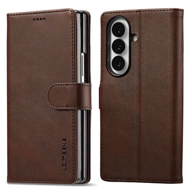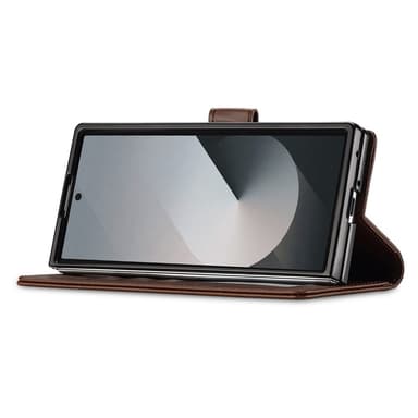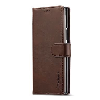 Tämä tyylikäs kotelo on valmistettu PU-nahasta, jossa on vasikannahkainen rakenne, sekä TPU-materiaalista, tarjoten pehmeän tuntuman ja hienostuneen ulkonäön. Se suojaa puhelinta kauttaaltaan 360 asteen suojalla. Kaksi korttipaikkaa, valokuvapaikka ja setelitasku mahdollistavat lompakon jättämisen kotiin. Taitettava jalusta mahdollistaa säädettävän katselukulman handsfree-käyttöön. Vahva magneettisuljin pitää puhelimen, rahat ja kortit turvassa. Varattu kaiutinaukko mahdollistaa puhumisen kotelo suljettuna.