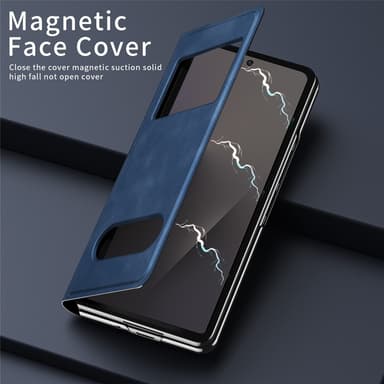 SKALO Samsung Z Fold7 PU-Nahka Window Suojakuori - Sininen