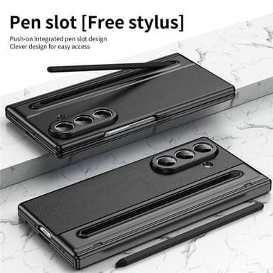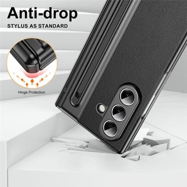 Kestävä ja tyylikäs muotoilu korkealaatuisesta PC:stä ja PU-nahasta, jossa on mattapintainen, sähköpinnoitettu viimeistely ammattimaiseen ilmeeseen. Vahvistettu rakenne suojaa tehokkaasti arjen kolhuilta, pudotuksilta ja iskuilta. Sisäänrakennettu kynäpaikka ja mukana tuleva stylus helpottavat säilytystä ja käyttöä liikkeellä ollessa. Mukana toimitetaan myös karkaistu lasi, joka suojaa näyttöä naarmuilta ja kulumiselta. Sähköpinnoitettu muotoilu ja saranasuojus tarjoavat tyylikkään 360° suojan.