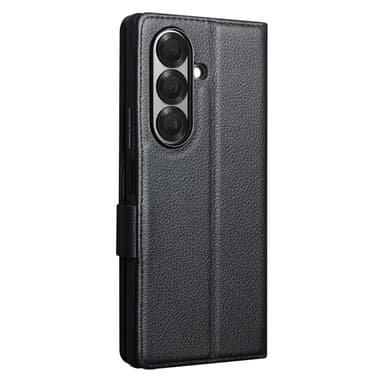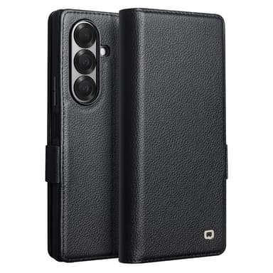 QIALINO Aitoa Nahkaa on tyylikäs lompakkokotelo, joka on valmistettu aidosta nahasta ja TPU-materiaalista. Se tarjoaa ylellisen tuntuman ja hienostuneen ulkonäön. Kestävä mutta pehmeä nahka tuntuu miellyttävältä kädessä ja patinoituu kauniisti ajan myötä. Magneettinen kansi pitää puhelimesi ja arvoesineesi turvallisesti paikoillaan, samalla kun se mahdollistaa nopean ja helpon käytön. Kaksi korttipaikkaa ja erillinen setelitasku tekevät tästä kotelosta täydellisen valinnan kevyesti matkustavalle. Sisäänrakennettu jalusta on säädettävissä useisiin kulmiin, joten videoiden katselu tai videopuhelut onnistuvat helposti ilman, että puhelinta tarvitsee pitää kädessä. Tarkat leikkaukset takaavat esteettömän pääsyn kaikkiin painikkeisiin, liitäntöihin ja kameroihin ilman, että koteloa tarvitsee irrottaa.
