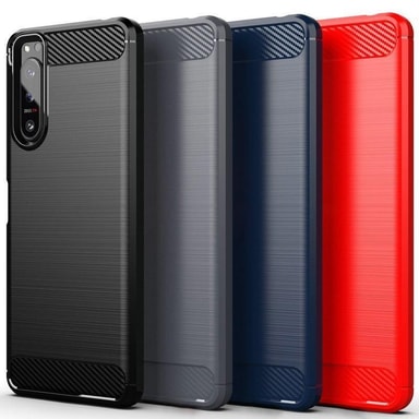 Iskunkestävä Armor Carbon-kuori TPU:sta, jossa on tyylikäs hiilikuituinen ulkonäkö.