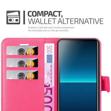 Lompakkokotelossa Sony Xperia L4 -älypuhelimelle on korttipaikat ja jalusta-toiminto. Tällä kotelolla puhelimesi on täydellisesti suojattu. Kotelo on valmistettu korkealaatuisista materiaaleista. Kaikkiin portteihin pääsee vapaasti käsiksiTutustu ominaisuuksiin