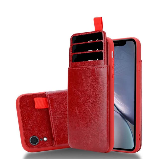 SUUNNITTELU: Laadukas keinonahkakotelo, joka suojaa puhelintasi ja näyttää samalla hyvältä. Kotelo on suunniteltu siten, että voit vetää ulos 2 korttipaikkaa punaisen kielekkeen ansiosta.