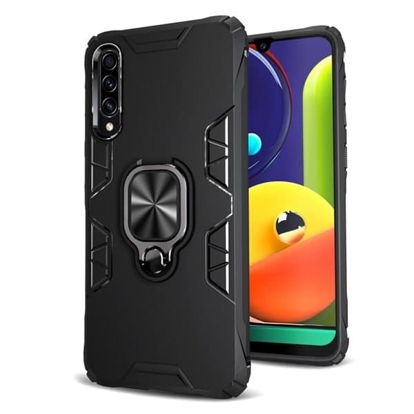Shockproof TPU suojakuori Samsung Galaxy A50 mallille sisäänrakennetulla rengaspidikkeellä / jalustalla. Ohut ja kätevä matkapuhelimen kuori , joka tarjoaa puhelimesta tukevan otteen ja suojaa sitä lialta, pölyltä, naarmuilta, iskuilta ja arjen kulumiselta lisäämättä painoa tai olematta kömpelö. TPU-kuoren tiukasti sulkeutuva istuvuus tarjoaa optimaalisen suojan jättäen täyden pääsyn kaikkiin puhelimen portteihin ja painikkeisiin. Kuoren takana olevaa käytännöllistä mobiilirengasta voidaan kääntää ja kiertää eri asentoihin käytettäväksi joko sormipidikkeenä, mikä tarjoaa tukevan otteen puhelimesta, tai jalustana elokuvien katseluun vaakasuorassa jne.