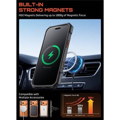 Varustettu tehokkaalla N52-magnetilla, joka tarjoaa magneettivoimaa jopa 1500g. Vahva magneettivoima takaa saumattoman yhteensopivuuden MagSafe-lisävarusteiden kanssa.