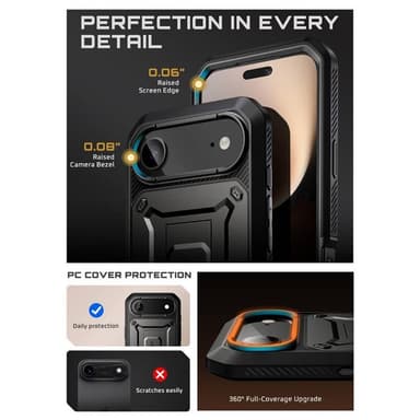 Supcase Unicorn Beetle Pro mobiilikuori on suunniteltu täyttämään korkeimmat standardit ja tarjoamaan puhelimellesi parhaan mahdollisen suojan. Polykarbonaatista valmistetulla iskunvaimentavalla takaosalla, TPU reunoilla ja polykarbonaattisella etuosalla tämä mobiilikuori tarjoaa sotilasluokan suojan naarmuilta, iskuilta ja putoamisilta. Supcase on voittanut CNETin ensimmäisen palkinnon erilaisissa testeissä, joissa kuorta pudotettiin eri korkeuksista eikä se hajonnut. Supcase on myös saanut Yhdysvaltain armeijan MIL-STD 810G-516.6 sertifikaatin. Mobiilikuoressa on integroitu teline, joka voidaan taittaa tarvittaessa esiin. Mukana on myös kätevä vyöklipsi, jonka avulla voit kiinnittää kuoren vyöhön.