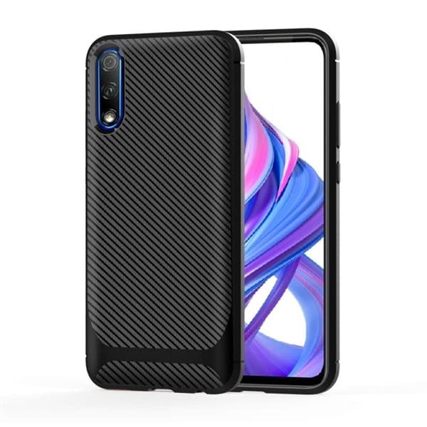 TPU kuori Huawei Honor 9X Pro, Carbon Fiber+Musta