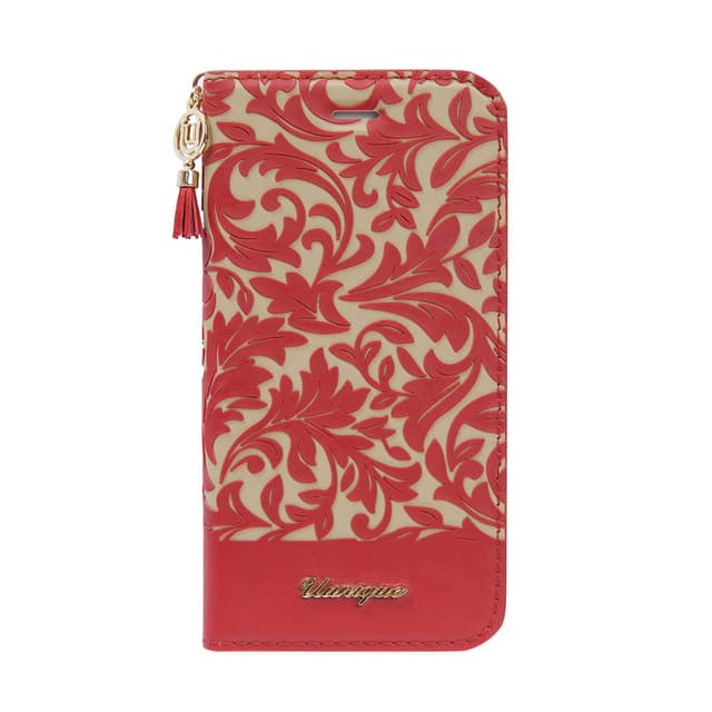• Tyylikäs Damask Folio Punainen/Beige iPhone SE / 8 / 7 kuori
