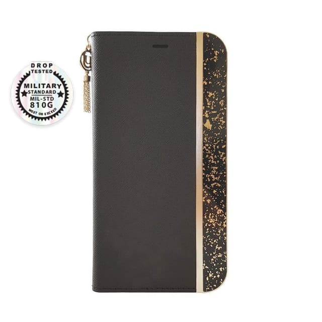 • Tyylikäs Folio Musta/Kulta iPhone XR kuori