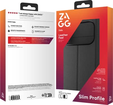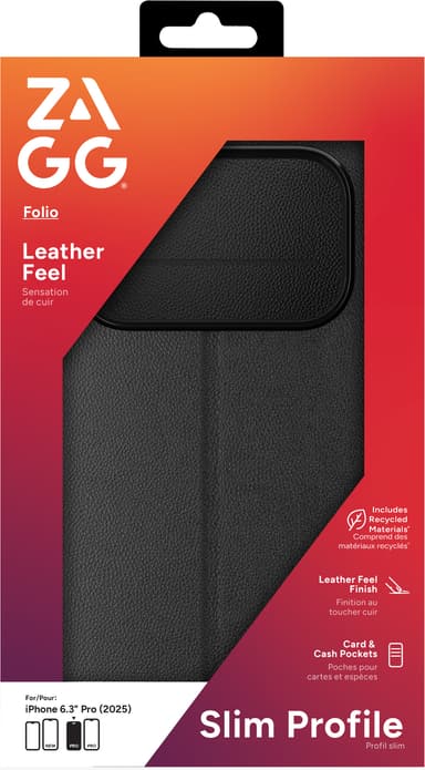 ZAGG Folio iPhone 17 Pro -suojakuori suojaa puhelintasi pudotuksilta, kolhuilta ja naarmuilta. Laadukas tekonahkainen muotoilu antaa laitteelle ylellisen ulkonäön ja tyylikkään tuntuman, joten voit kantaa sitä mukanasi huoletta.Tutustu ominaisuuksiin