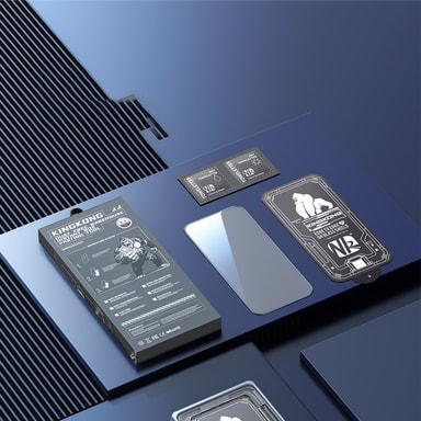 • Sisältää pölyttömän asennuskehyksen helppoa, kuplatonta asennusta varten yhteensopiviin iPhoneihin.