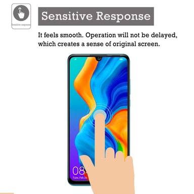 Suuri kosketusherkkyys: Näytönsuoja ei vaikuta kosketusnäytön herkkyyteen, ja näyttö tuntuu yhtä helppokäyttöiseltä kuin Huawei P30: n alkuperäinen näyttö.