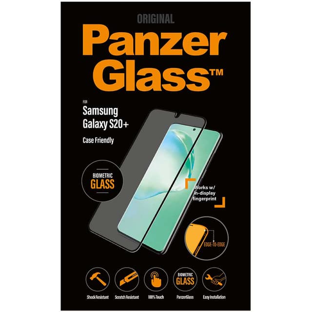 Myös suojakotelolla varustettujen älypuhelinten kanssa toimiva Panzer Samsung Galaxy S20 Plus -näytönsuoja varjelee laitteesi näyttöä. Näytönsuojan asennus on helppoa, ja se ei estä näyttöön upotetun sormenjälkitunnistimen toimintaa.