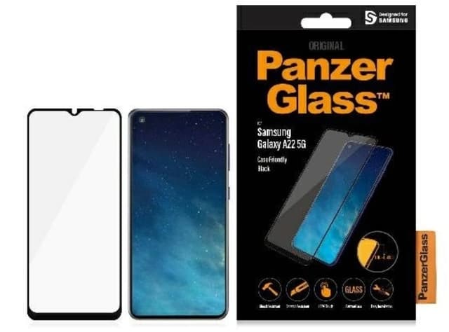 PanzerGlass 7274. Näytönsuojan tyyppi: Kirkas näytönsuoja, Tuotemerkin yhteensopivuus: Samsung, Yhteensopivuus: Galaxy A22 5G, Suojaustoiminnot: Antibakteerinen, Naarmuuntumisenkestävä. Materiaali: Karkaistu lasi, Tuotteen väri: Läpinäkyvä