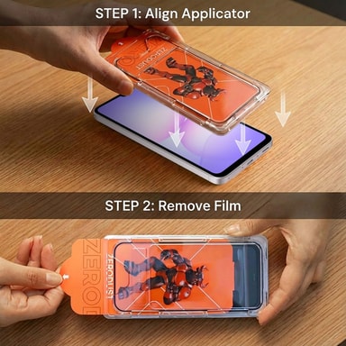 Karkaistu lasisuojakalvo on 0,3 mm ohut ja läpinäkyvä, ja sen tarttumattomalla puolella on silikonikomponentteja, jotka parantavat sormien liukumista näytöllä. Näytön värinkestävyys on edelleen taattu.