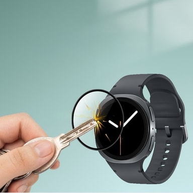 Sormenjälkien esto: Samsung Watch 8 44mm:n näytönsuojan sormenjälkiä hylkivä pinnoite pitää näytön puhtaana ja selkeänä. Se vähentää sormenjälkien ja tahrojen muodostumista, jolloin sinun ei tarvitse jatkuvasti pyyhkiä näyttöä. Tämä on erityisen hyödyllistä, jos käytät kelloasi usein ulkona tai kosketat sitä likaisilla käsillä. Pinnoite on suunniteltu säilyttämään herkkyytensä, joten kosketusnäyttö toimii moitteettomasti. Sen ansiosta voit nauttia kirkkaasta ja selkeästä näytöstä ilman häiritseviä sormenjälkiä. Lisäksi se on helppo puhdistaa, joten näyttö pysyy aina edustavana.