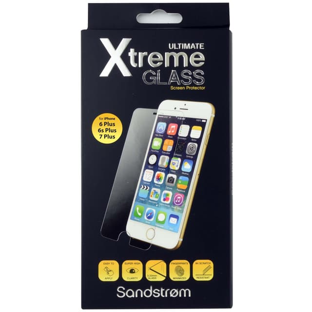 Ohut ja kestävä Sandstrøm Ultimate Xtreme suojaa iPhone 6/6S/7 Plus -älypuhelimesi näyttöä. Kestävästä lasista (9H) valmistettu suoja peittää näytön täydellisesti ja sen kiinnittäminen on helppoa.