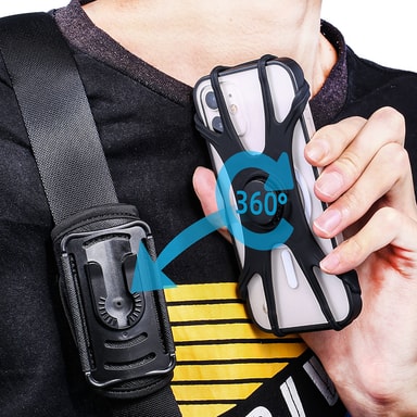 Monipuolinen ja säädettävä: Tämä pidike on suunniteltu useisiin käyttötarkoituksiin, ja se voidaan kiinnittää vöihin, reppuihin, vyötärönauhoihin ja muihin. Sen 360 asteen kierto mahdollistaa optimaaliset katselukulmat riippumatta siitä, pidätkö pysty- vai vaakasuuntaisesta tilasta. Säädettävä pidike sopii erikokoisille puhelimille, joten se on monipuolinen lisävaruste eri laitteille.