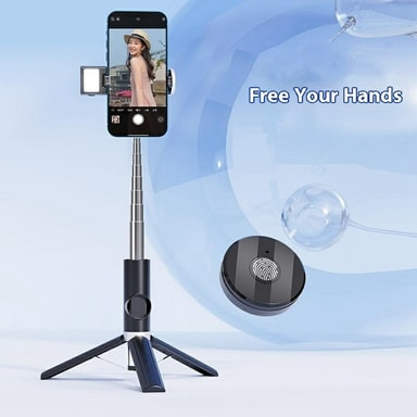 P12S kannettava Bluetooth-yhteensopiva kaukosäädin selfiekeppi älypuhelimille jatkettava jalusta yhdellä täyttövalolla【Vakaa jalusta】Vahva jalusta tarjoaa paremman vakauden jopa tuulisissa olosuhteissa.【360° kierto】Tukee puhelimen 360 asteen kiertoaTutustu ominaisuuksiin