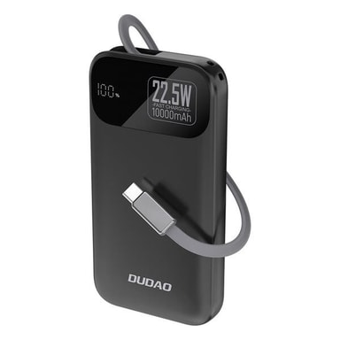 Dudao K31 10000 mAh 22.5W PD Powerbank sisäänrakennetulla USB-C-kaapelilla - SvartTutustu ominaisuuksiin