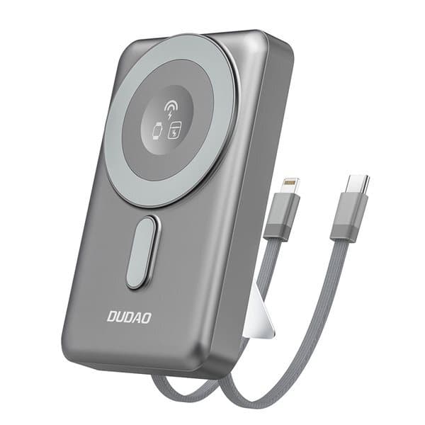 Dudao Tehopankki 10000mAh PD 20W MagSafella, jalustalla ja sisäänrakennetuilla USB-kaapeleilla - HarmaaTutustu ominaisuuksiin