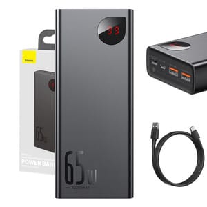 Baseuksen tuotteen ansiosta lataat kannettavan tietokoneen tai puhelimesi nopeasti. Laite tukee 65 W Power Delivery -pikalatausprotokollaa, joten MacBookin akku latautuu täyteen vain kahdessa tunnissa. Powerbank on varustettu kahdella USB-lähtöportilla ja USB-C- ja mikro-USB-lähtö-/tuloportilla.