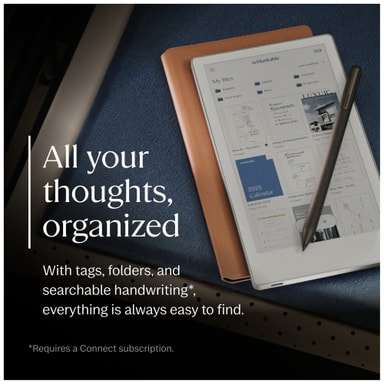*Muistiinpanojen teko sovelluksissa ja käsialahaku edellyttävät Connect-tilausta. Uudet reMarkable-käyttäjät saavat 50 päivän ilmaisen kokeilujakson, jonka jälkeen tilauksen hinta on $2.99/kk. Tilauksen voi peruuttaa milloin tahansa.