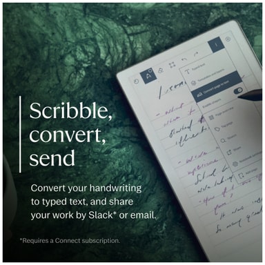 *Muistiinpanojen teko sovelluksissa ja käsialahaku edellyttävät Connect-tilausta. Uudet reMarkable-käyttäjät saavat 50 päivän ilmaisen kokeilujakson, jonka jälkeen tilauksen hinta on $2.99/kk. Tilauksen voi peruuttaa milloin tahansa.