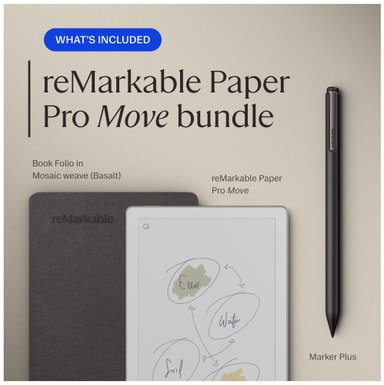 reMarkable Paper Pro Move E-ink lukulaite + Marker Plus & Weave Folio