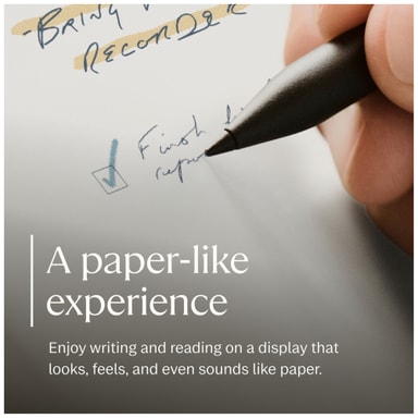Nauti käsinkirjoittamisesta näytölle, joka näyttää, tuntuu ja jopa kuulostaa kuin paperilta. Sisäänrakennettu lukuvalo takaa hienovaraisen valaistuksen, minkä ansiosta näyttö ei rasita silmiä.