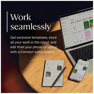 *Muistiinpanojen teko sovelluksissa ja käsialahaku edellyttävät Connect-tilausta. Uudet reMarkable-käyttäjät saavat 50 päivän ilmaisen kokeilujakson, jonka jälkeen tilauksen hinta on $2.99/kk. Tilauksen voi peruuttaa milloin tahansa.