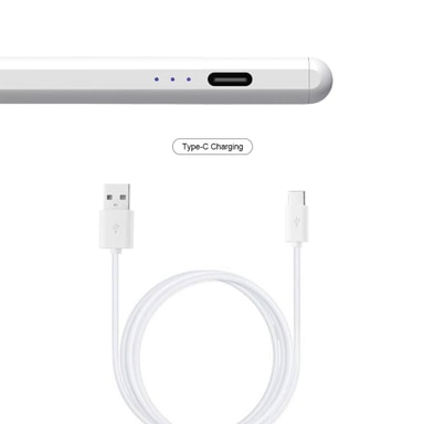 Kärki on vaihdettavissa ja kynä sammuu automaattisesti 5 minuutin valmiustilassa akun säästämiseksi. Ladataan mukana tulevalla USB-C-kaapelilla. Akun tila näytetään kynässä olevilla merkkivaloilla.