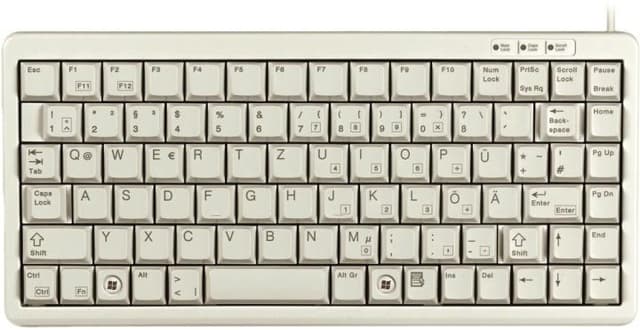 Kätevä ja toimiva Cherryn mininäppäimistö, jossa ML-kytkimet. Näppäimistön oikealla puolella olevan numeropuolen puuttuminen tekee tästä erittäin kätevän ja joka on todella kysytty, kun haluat näppäimistön 19"" teline-kaappiin.