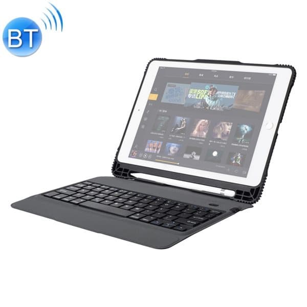 Kestävä ja vedenpitävä iPad kotelo kynälokerolla, telinetoiminnolla, sekä irrotettavalla Bluetooth näppäimistöllä. Suojakotelo on valmistettu keinonahasta pehmeällä ja iskunkestävällä TPU-kuorella.