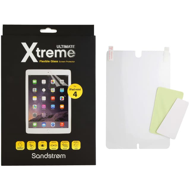 Ohut ja kestävä Sandstrøm Ultimate Xtreme Protector suojaa Apple iPad mini 4 -laitteesi näyttöä. Kestävästä 9H-lasista valmistettu kalvo peittää näytön täydellisesti ja on helppo kiinnittää.