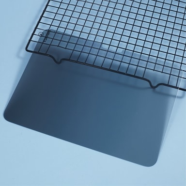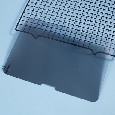 Karkaistusta lasista valmistettu yksityisyyden suoja. Kestävä ja naarmuuntumaton karkaistua lasia oleva näytönsuoja, jonka kovuus on 9H.