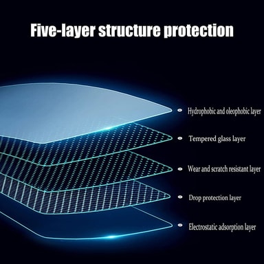 Kestävä ja naarmuuntumaton karkaistua lasia oleva näytönsuoja, jonka kovuus on 9H.