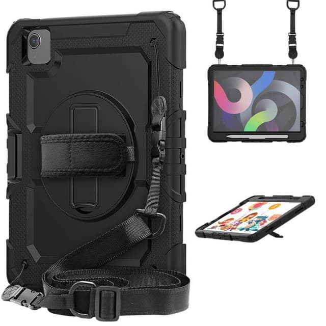 Käytännöllinen 3-kerroksinen hybridikuori, joka suojaa koko tablet-laitettasi Apple iPad Air 10.9 (2022). Integroitu jalusta, jonka avulla saat oikean kulman työskennellessäsi, pelaaessasi ja katsoessasi videoita/elokuvia/sarjoja. Siinä on olkahihna/kantohihna, joten se on täydellinen ottaa mukaan töihin, kouluun tai vapaa-aikaan. Kotelo on varustettu pölytulpalla ja peitetyillä painikkeilla, jotka suojaavat tablettia pölyltä ja lialta. 360 astetta kääntyvä kuori säädettävällä tarranauhalla, joka pitää tabletin tukevasti paikallaan. Tekniset tiedot: - 360 astetta kääntyvä jalusta säädettävällä käsihihnalla turvallisen ja vakaan otteen takaamiseksi. - Täydellinen 3 kerroksen suoja iskuja, naarmuja, pölyä ja likaa vastaan. - Olkahihna helpottaa tabletin kuljettamista tai ripustamista. - Sisäänrakennettu kynäteline kynän säilytystä varten (ei sisälly).