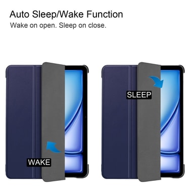 iPad Air 13 (2024) Kotelo Auto Herää / Nuku Kolminkertainen Taittojalusta Tabletin Suoja - SininenTämä kotelo on luonteenomaista hienovaraisella PU-nahalla, yhdistettynä PC-sisäkoteloon, laadukkaaseen ja houkuttelevaan ulkonäköön.Tutustu ominaisuuksiin