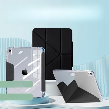 Tämä klassinen musta suojakotelo on suunniteltu iPadille, ja siinä on kätevä oikeanpuoleinen Apple Pencil -teline. Kolminkertainen etukansi muuttuu telineeksi, jossa on useita katselukulmia mukavaan kirjoittamiseen ja katseluun.Tutustu ominaisuuksiin