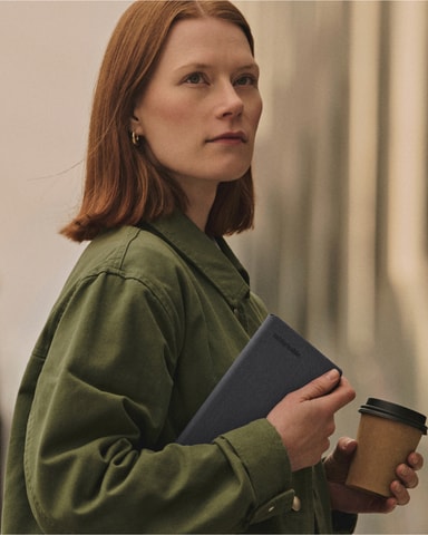 reMarkable Paper Pro Move Polymer Weave Book Folio (burungdi) pitää paperitablettisi turvassa ja tyylikkäänä. Polymeerikudoskuori kiinnittyy laitteeseesi magneettisesti ja tarjoaa herätys-/lepotoiminnon sekä merkintöjen säilytystilan.Tutustu ominaisuuksiin