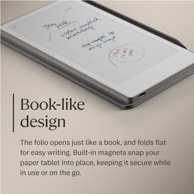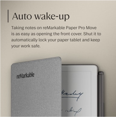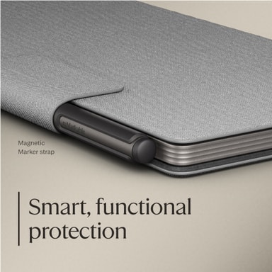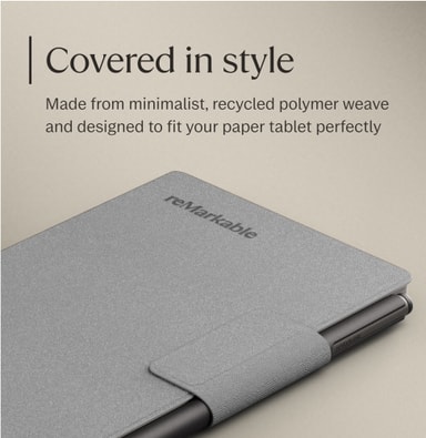 reMarkable Paper Pro Move Polymer Weave Book Folio (harmaa) pitää paperitablettisi turvassa ja tyylikkäänä. Polymeerikudoskuori kiinnittyy laitteeseesi magneettisesti ja tarjoaa herätys-/lepotoiminnon sekä merkintöjen säilytystilan.Tutustu ominaisuuksiin
