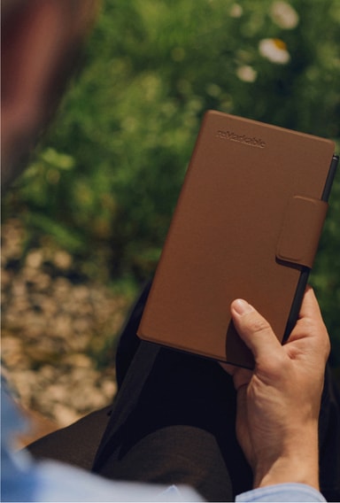 Sisäänrakennetut magneetit kiinnittävät reMarkable Paper Pro Move -laitteesi turvallisesti paikalleen. Magneetit ovat riittävän vahvoja pitämään laitteesi, mutta ne on helppo irrottaa tarvittaessa, mikä tarjoaa sekä turvallisuutta että mukavuutta.