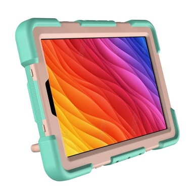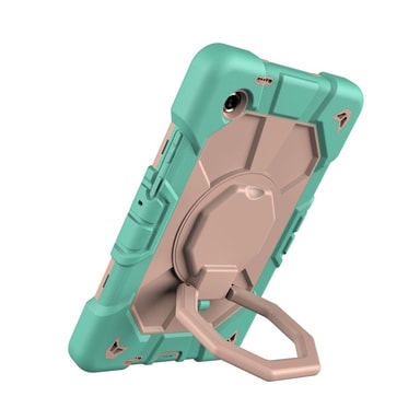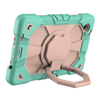 Tämä erittäin iskunkestävä Armor Ring -kotelo on valmistettu kestävästä muovin ja silikonin yhdistelmästä, tarjoten erinomaisen suojan kolhuja, pudotuksia ja naarmuja vastaan. Vahva kahva helpottaa kantamista ja sopii sekä lapsille että aikuisille. Taitettava jalusta mahdollistaa handsfree-katselun, ihanteellinen videoihin ja verkkotunteihin. Vahvistetut kulmat ja tarkat leikkaukset takaavat suojan ja toimivuuden. Joustava kynänpidike pitää styluksen turvassa ja helposti saatavilla.